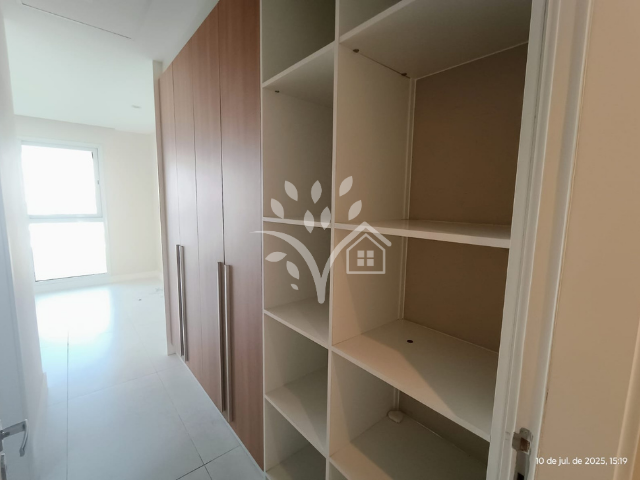 Composto por uma ampla varanda, sala de estar com dois ambientes, lavabo decorado e sala íntima aconchegante. Possui 4 suítes, todas com armários planejados e varanda com vista mar, sendo uma suíte master com closet e banheira de hidromassagem.