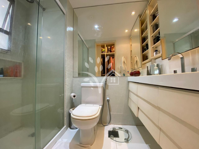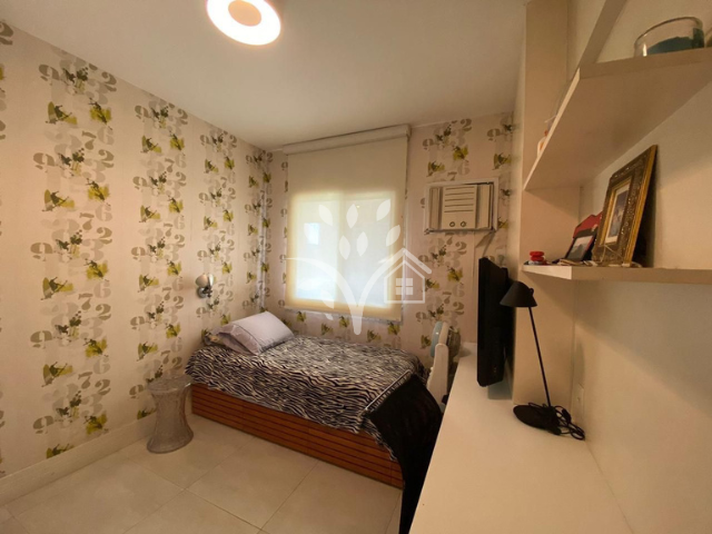 Apartamento com 115m², em andar médio, com vista externa para as quadras de tênis. Planta original de 3 quartos mais dependência completa. Atualmente conta com 3 quartos, sendo 1 suíte, banheiro social e um lavabo. A configuração foi otimizada, mantendo o banheiro de serviço, transformando o quarto de serviço em um prático roupeiro no corredor e acrescentando um lavabo para maior comodidade.