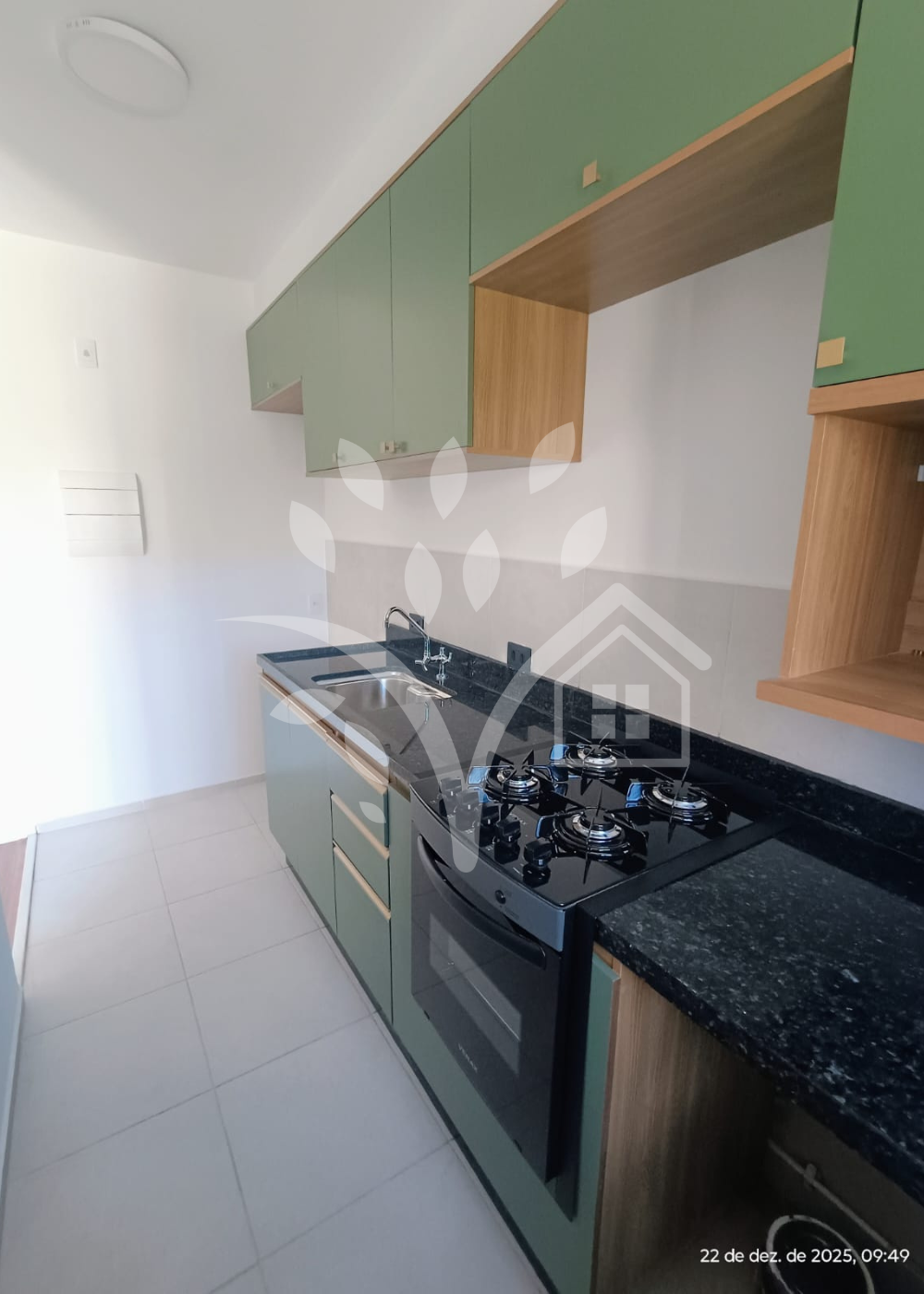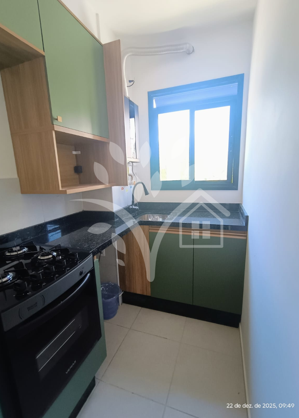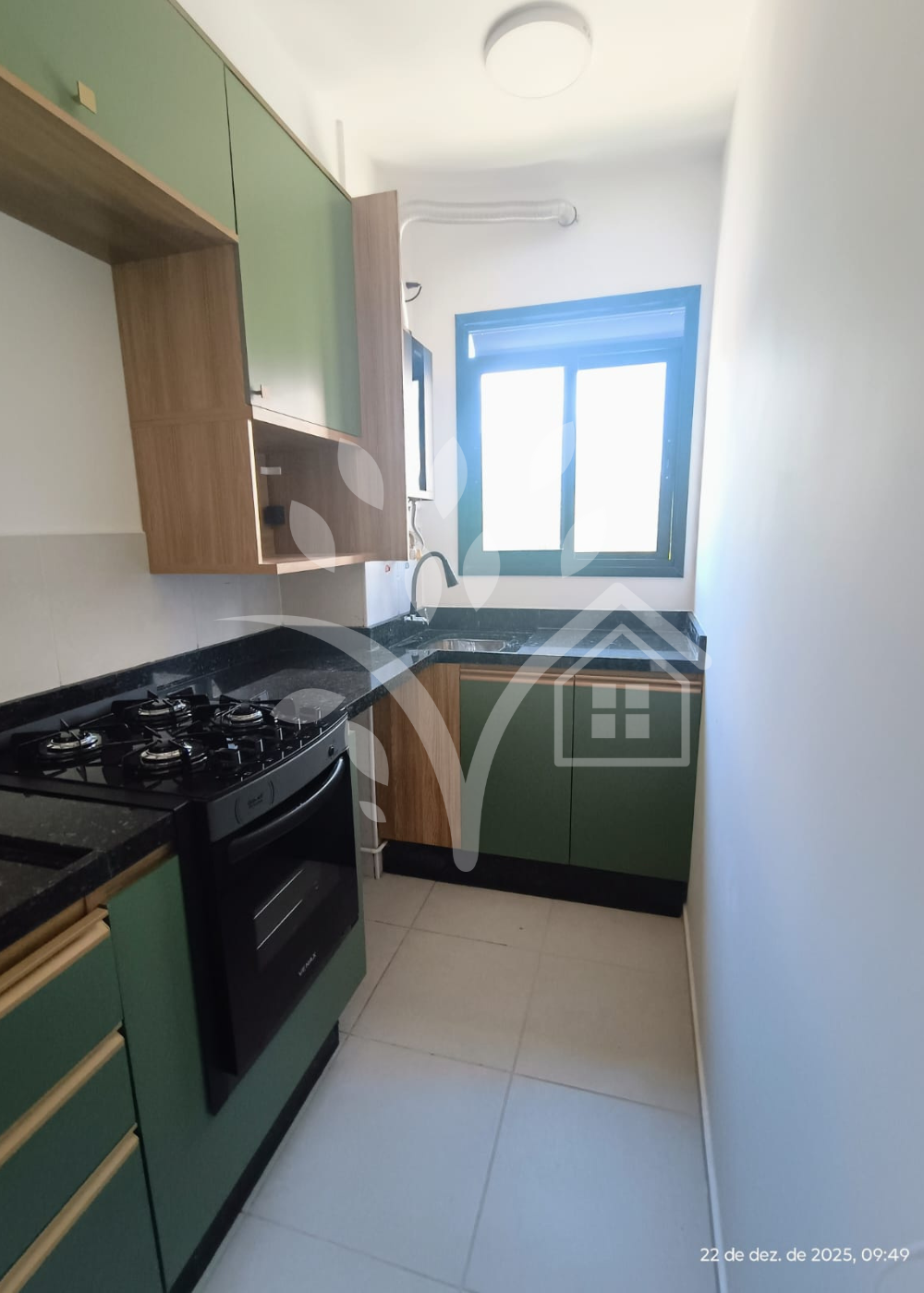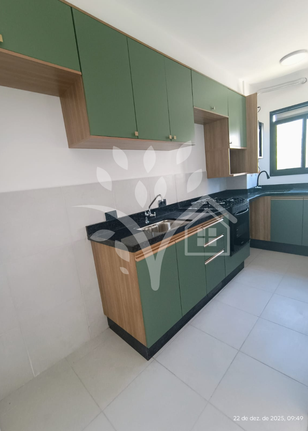 Apartamento no Condomínio Living Parque, com armários planejados na cozinha, quartos e banheiros.